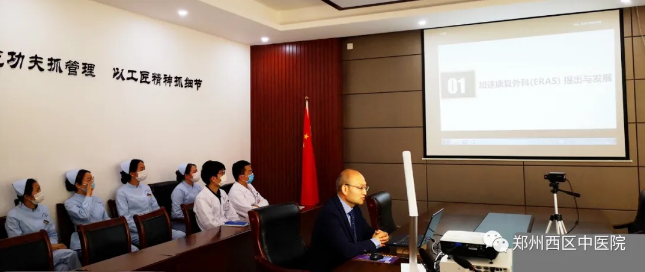 河南省知名專家、省中醫(yī)院骨科主任王上增教授應(yīng)邀參加本次會(huì)議,會(huì)議直播間設(shè)在鄭州西區(qū)中醫(yī)院(河南省中醫(yī)院西區(qū)醫(yī)院)三樓會(huì)議室,西區(qū)醫(yī)院外科全體醫(yī)護(hù)人員共同參會(huì)。本次大會(huì)通過(guò)ERAS能力建設(shè)公眾號(hào)直播平臺(tái)現(xiàn)場(chǎng)直播。(ERAS,enhanced recovery after surgery,即加速康復(fù)外科,是近年發(fā)展起來(lái)的外科圍手術(shù)期處理創(chuàng)新理念和治療康復(fù)模式,是指通過(guò)一系列有循證醫(yī)學(xué)證據(jù)的圍手術(shù)期優(yōu)化措施,以減少病人的生理及心理的創(chuàng)傷應(yīng)激,達(dá)到快速康復(fù)的目的,是未來(lái)醫(yī)療領(lǐng)域發(fā)展的新方向,它圍繞“保障病人醫(yī)療安全、減輕病人心理和生理創(chuàng)傷應(yīng)激、促進(jìn)病人快速康復(fù)并回歸社會(huì)”,對(duì)于提高醫(yī)院醫(yī)療質(zhì)量、確保醫(yī)療安全、提高醫(yī)療服務(wù)水平有著重大的意義)。