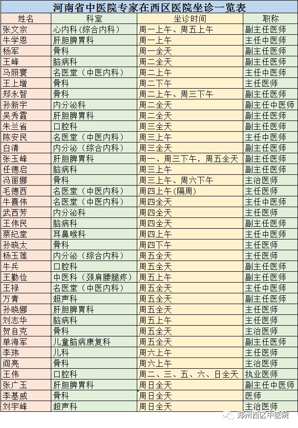 為讓高新區(qū)的老百姓在家門口就能享受到三甲醫(yī)院專家的優(yōu)質(zhì)診療服務(wù),鄭州西區(qū)中醫(yī)院(河南省中醫(yī)院西區(qū)醫(yī)院)自去年7月份正式開診以來,每天都有省級三甲醫(yī)院——河南省中醫(yī)院大批專家來這里坐診,名醫(yī)堂、兒科、骨科、神經(jīng)內(nèi)科、心血管呼吸內(nèi)科、內(nèi)分泌科、肝膽脾胃科、口腔科、疼痛科、影像科等科室高精尖專家團(tuán)隊(duì)已全面進(jìn)駐西區(qū)醫(yī)院,從周一到周日每天都有省中醫(yī)院各科室專家來這里坐診、查房、手術(shù)!