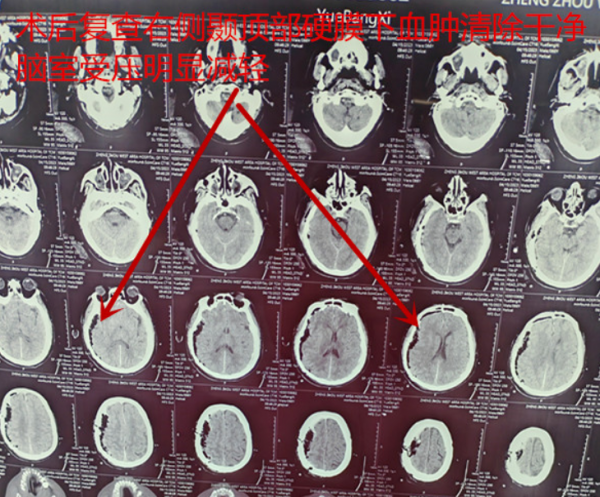 經(jīng)頭顱CT檢查,患者岳先生右側(cè)顳頂部硬膜下血腫,中線結(jié)構(gòu)明顯左偏,腦室明顯受壓,遂收治到神經(jīng)外科病區(qū)進(jìn)行治療?!安缓茫≡老壬ぁぴ老壬ぁぁぁ被颊咭庾R(shí)障礙進(jìn)行性加重,呈昏迷狀態(tài),情況非常危急,科室人員立刻請(qǐng)來了剛加盟到神經(jīng)外科的專家張新昌教授。 張教授趕到醫(yī)院即刻為患者制定了詳細(xì)的診療方案,在做好一切準(zhǔn)備工作之后,神經(jīng)外科團(tuán)隊(duì)在張教授的帶領(lǐng)下進(jìn)行“開顱手術(shù)”清除血腫。 經(jīng)過3個(gè)小時(shí)的努力,“顱內(nèi)血腫清除術(shù)”順利完成。張教授第二天查房,患者意識(shí)狀態(tài)明顯好轉(zhuǎn),可呼之睜眼,四肢無活動(dòng)障礙,手術(shù)效果良好,至此,鄭州西區(qū)中醫(yī)院首例“開顱手術(shù)”成功實(shí)施! 從日落西沉到旭日東升,從晨曦微露到星辰璀璨,每一次成功的挑戰(zhàn)絕非偶然,那是專家歷經(jīng)多年耕耘,潛心研究由汗水凝結(jié)而成的結(jié)果。 此次手術(shù)的成功開展,為我院神經(jīng)外科治療積累寶貴的手術(shù)經(jīng)驗(yàn),展現(xiàn)了精湛嫻熟的醫(yī)療技術(shù)水平。 今后,鄭州西區(qū)中醫(yī)院將以此次手術(shù)的成功開展為契機(jī),以更為精湛的醫(yī)療技術(shù)和優(yōu)質(zhì)醫(yī)療服務(wù),為挽救生命全力以赴,為患者健康保駕護(hù)航!
