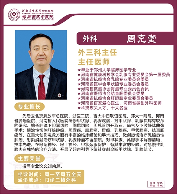 周克堂——甲狀腺、乳腺疾病專家、外三科主任、主任醫(yī)師