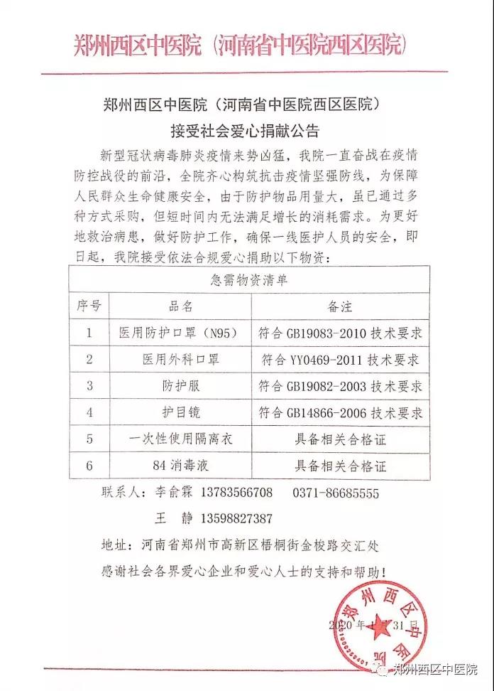 1995 瀏覽鄭州西區(qū)中醫(yī)院(河南省中醫(yī)院西區(qū)醫(yī)院)接受社會(huì)愛心捐贈(zèng)公告