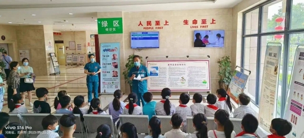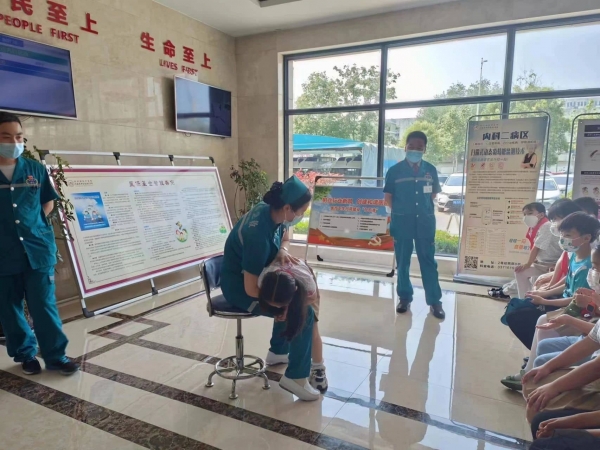 急診科作為應(yīng)對(duì)社會(huì)突發(fā)公共衛(wèi)生事件的急救保障單位,為醫(yī)院危急重癥患者提供了有效安全的日常診療服務(wù),為了普及急救知識(shí),增強(qiáng)學(xué)生對(duì)突發(fā)事件和意外傷害的應(yīng)急處理能力,5月20日上午,鄭州中學(xué)附屬小學(xué)玉蘭街校區(qū)三九班40余名小學(xué)生走進(jìn)鄭州西區(qū)中醫(yī)院急診科參觀學(xué)習(xí)。