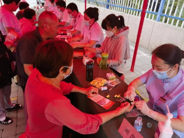 義診現(xiàn)場,前來檢查的居民絡繹不絕,醫(yī)護人員耐心的為大爺大媽們測量血壓、血糖,針對其提出的不舒服的癥狀、疑惑,科室專家給出具有專業(yè)性、指導性的建議。針對中老年群體的常見病、多發(fā)病專家給予合理化治療建議。