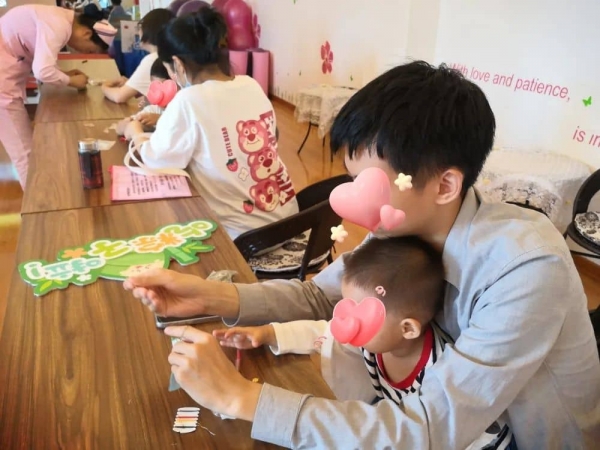 活動(dòng)現(xiàn)場(chǎng),醫(yī)護(hù)人員為準(zhǔn)爸媽們準(zhǔn)備了DIY香囊,準(zhǔn)父母?jìng)冘S躍欲試,紛紛投入香囊的制作中去。在婦產(chǎn)科專家李玉偉和護(hù)士的指導(dǎo)下,香囊逐漸出現(xiàn)雛形。