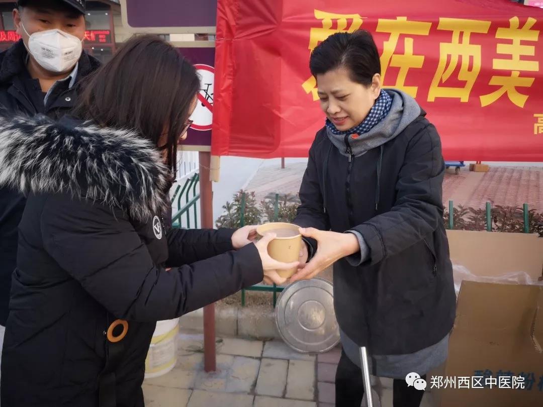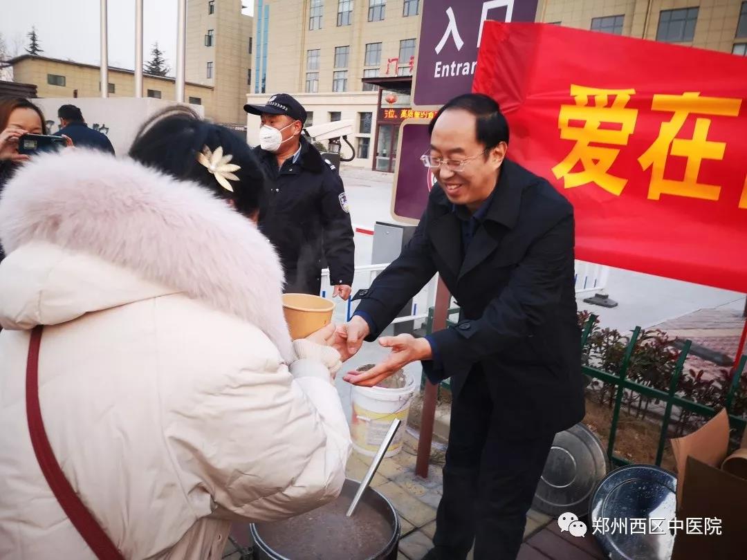 鄭州西區(qū)中醫(yī)院院長王永漢現(xiàn)場送粥