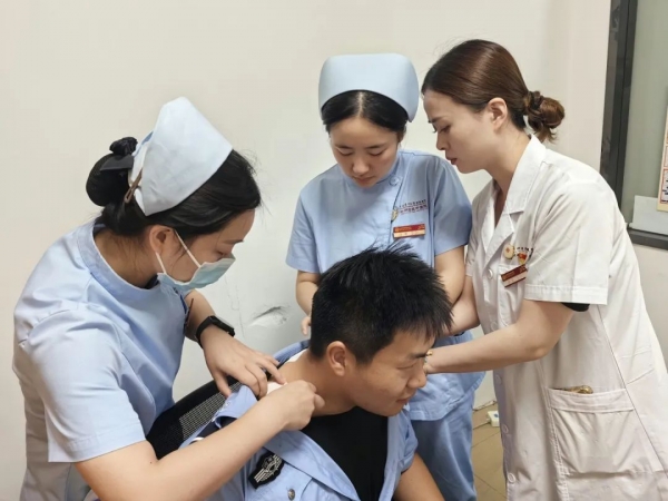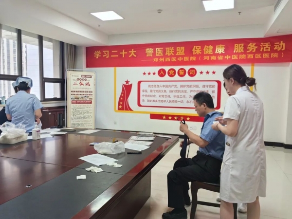 活動期間,鄭州西區(qū)中醫(yī)院工會主席陳霞帶領(lǐng)疼痛科醫(yī)護人員走進高新區(qū)檢察院、高新分局、交警二支隊、高新區(qū)城市管理局、高新區(qū)城市交通治理中隊為大家貼敷三伏貼,普及冬病夏治理念,提升健康服務(wù)。