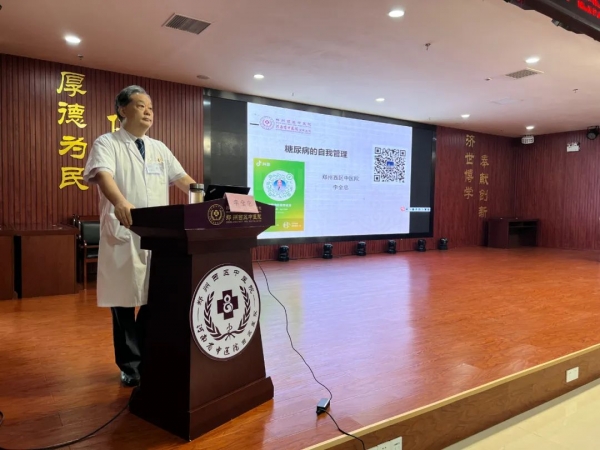 講座上,我院副院長(zhǎng)糖尿病專家李全忠教授為居民講解了“五駕馬車”治療糖尿病的相關(guān)知識(shí),重點(diǎn)講解了運(yùn)動(dòng)治療糖尿病的方法,李院長(zhǎng)表示,運(yùn)動(dòng)作為糖尿病“五駕馬車”之一,在糖尿病管理中占據(jù)重要位置,規(guī)律運(yùn)動(dòng)可以幫助改善胰島素的敏感性,改善脂肪和蛋白質(zhì)代謝,可起到預(yù)防和治療糖尿病并發(fā)癥的作用,同時(shí)改善糖友的心理狀態(tài)。