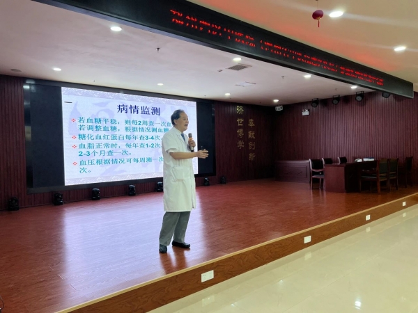 講座上,糖尿病專家李全忠教授講解糖尿病“五駕馬車”治療及糖尿病的預(yù)防知識,重點介紹如何監(jiān)測血糖及監(jiān)測血糖的重要性,血糖監(jiān)測是糖尿病綜合管理原則“五駕馬車”的重要組成部分,是評估治療效果的評價指標,也是糖尿病人自我管理的重要手段,通過監(jiān)測血糖的變化,可以了解血糖控制的情況及時調(diào)整治療方案,減少糖尿病并發(fā)癥的危害。
