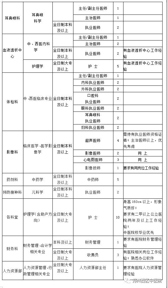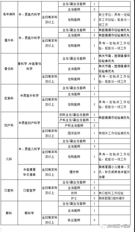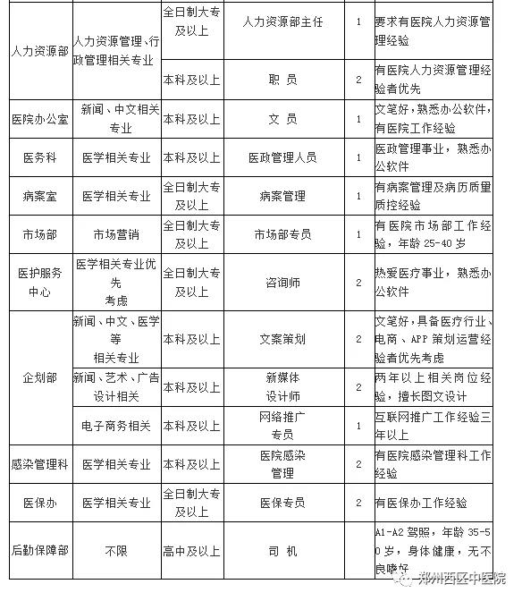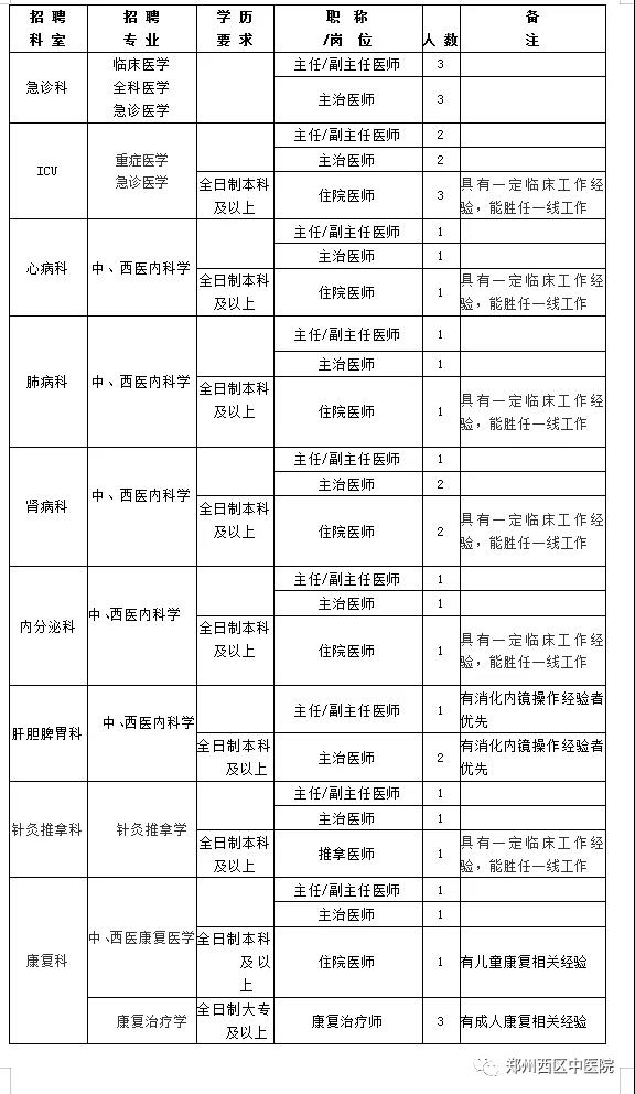 附:鄭州西區(qū)中醫(yī)院(河南省中醫(yī)院西區(qū)醫(yī)院)公開(kāi)招聘工作人員崗位信息表
