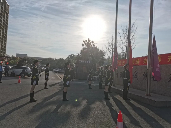 我院職工肅穆而立、滿懷深情地齊唱國歌,目光注視著冉冉升起的五星紅旗,共同祝愿偉大的祖國繁榮昌盛,國泰民安。