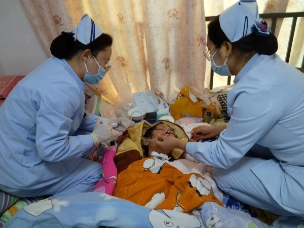 清潔、消毒、拔管、插管······看著護(hù)士長嫻熟的動作,董奶奶的老伴臉上露出惠心的微笑,20分鐘的時間鼻飼管換好了,護(hù)士長并向家屬詳細(xì)講解了日常護(hù)理及注意事項(xiàng)。醫(yī)院上門服務(wù),免出車費(fèi)、出診費(fèi)和治療費(fèi),此次僅用了22.4元,大爺?shù)难劾锼查g充滿了淚光,向醫(yī)護(hù)人員激動地表示感謝。一句感謝,一份肯定。“醫(yī)護(hù)到家”服務(wù),縮短行動不便患者的漫漫求醫(yī)路程,為醫(yī)療護(hù)理服務(wù)架起一座便捷的橋梁,走進(jìn)家庭,走進(jìn)床旁,專業(yè)的醫(yī)療,優(yōu)質(zhì)的服務(wù),換取患者和家屬幸福的笑顏。