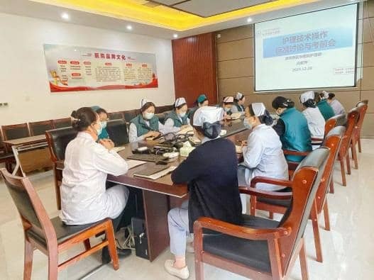 考試前期,主管護理副院長馮素萍組織臨床各科室護士長參加“護理技術(shù)操作標準研討與考前會”,馮院長要求監(jiān)考護士長必須要自己操作規(guī)范,熟知考核評分細則,提前查看考場設置,做好考前準備工作。