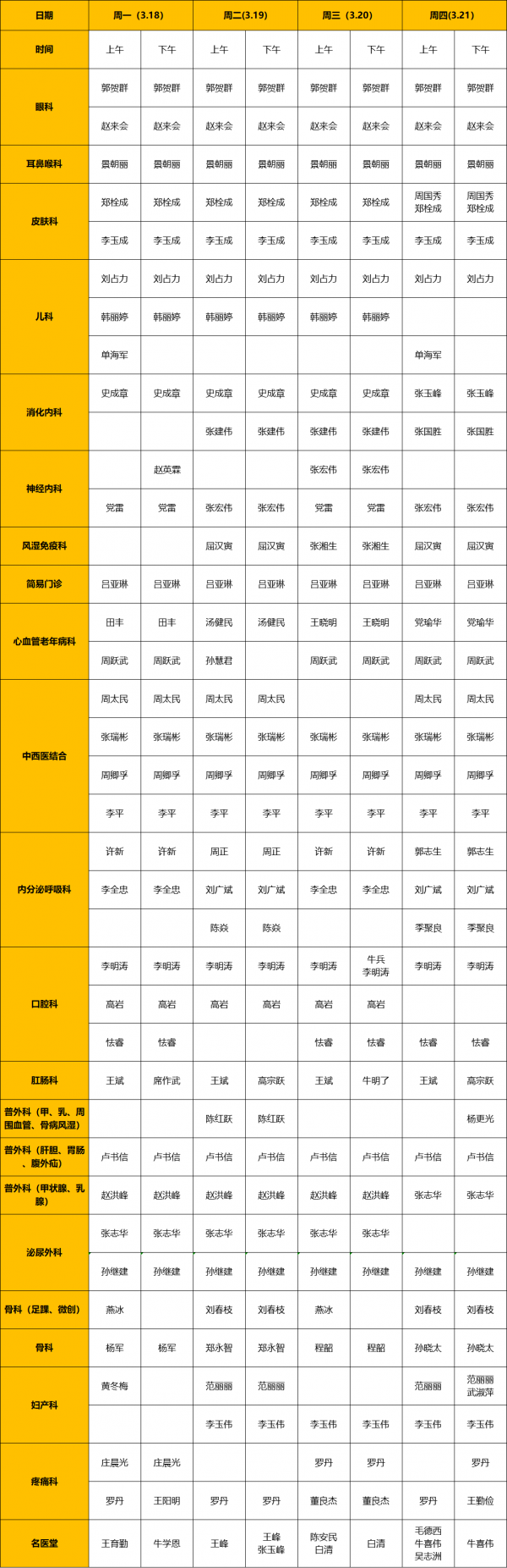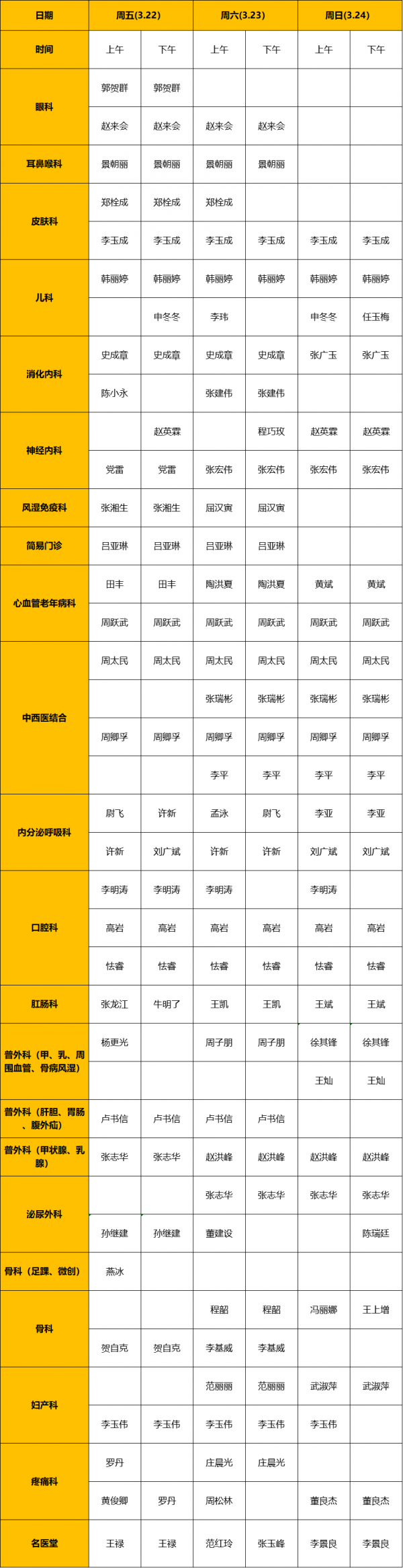 溫馨提醒:坐診專家,以當日實際出診專家為準。