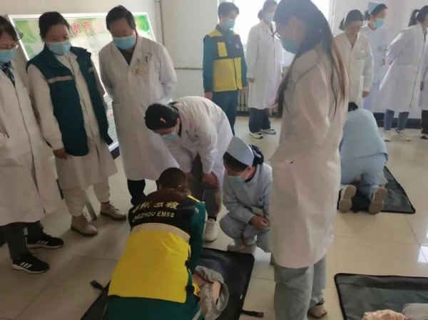 急診團隊現(xiàn)場分別演示了心肺復(fù)蘇、海姆立克急救法、AED的正確使用流程,在急診科團隊的指導(dǎo)下,大家分組進行模擬演練,急救團隊人員耐心細(xì)致地進行一對一的指導(dǎo),加強大家對急救技能的掌握。通過實踐操作,大家逐漸掌握心肺復(fù)蘇正確的按壓位置、力度等關(guān)鍵要素。