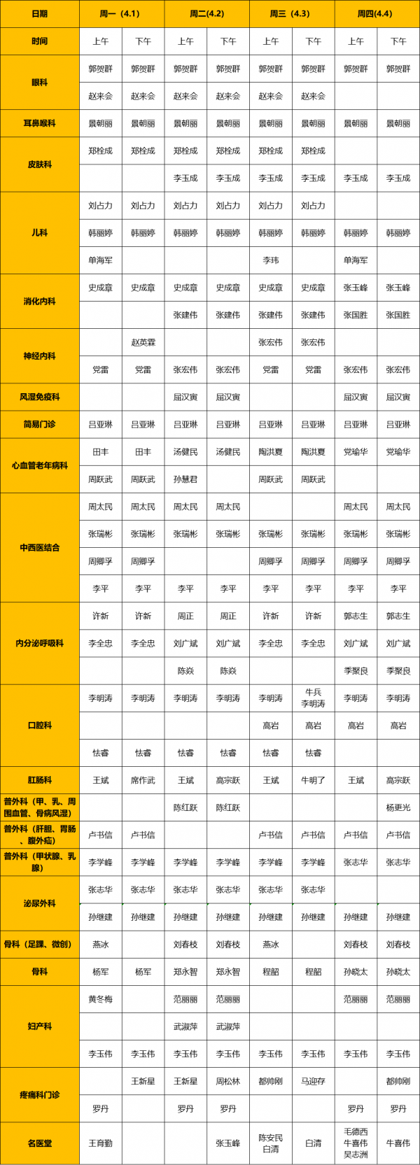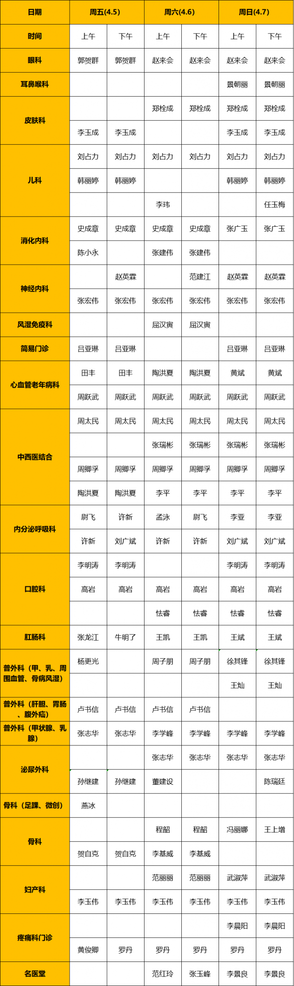 溫馨提醒:坐診專家,以當日實際出診專家為準。