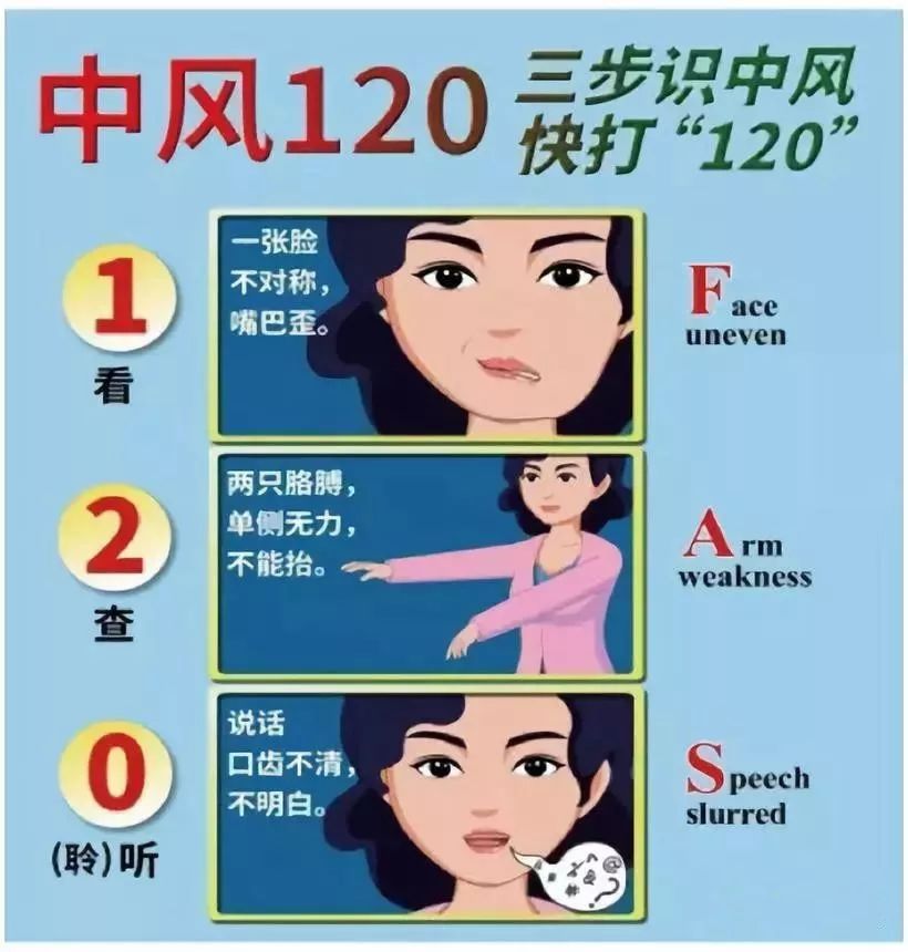 對(duì)于很多不了解腦卒中的人,及時(shí)識(shí)別卒中很關(guān)鍵,具體可參考卒中“120”: