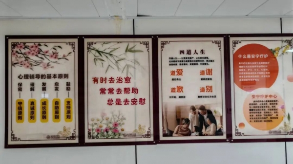 科室環(huán)境優(yōu)美,以疼痛管理、癥狀控制、舒適照護(hù)、營養(yǎng)支持、心靈關(guān)懷、康復(fù)治療、社會支持、死亡教育、哀傷輔導(dǎo)為主。