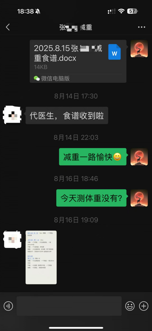 在整個減重過程中,張女士堅持記錄飲食與體重變化,并配合適度運動和充足飲水。盡管中途因孩子開學、工作忙碌等原因,運動和飲水有所減少,體重出現(xiàn)短暫平臺期,但在代主任的持續(xù)跟蹤與鼓勵下,她很快調(diào)整回來。