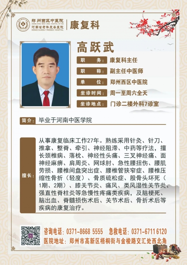 從事康復(fù)臨床工作27年。熟練采用針灸、針刀、推拿、整脊、牽引、神經(jīng)阻滯、中藥等療法,擅長頸椎病、落枕、神經(jīng)性頭痛、三叉神經(jīng)痛、面神經(jīng)麻痹、肩周炎、網(wǎng)球肘、急性腰扭傷、腰肌勞損、腰椎間盤突出癥、腰椎管狹窄癥、腰椎壓縮性骨折(輕度)、骨質(zhì)疏松癥、股骨頭壞死(1期、2期)、膝關(guān)節(jié)炎、痛風(fēng)、類風(fēng)濕性關(guān)節(jié)炎強(qiáng)直性脊柱炎等急慢性疼痛類疾病,及腦梗死、腦出血、脊髓損傷術(shù)后、關(guān)節(jié)術(shù)后、骨折術(shù)后等疾病的康復(fù)治療。