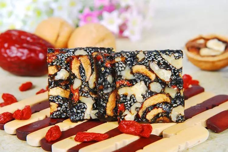 配方:阿膠、黑芝麻、核桃仁、冰糖、黃酒、紅棗、枸杞、西洋參等。