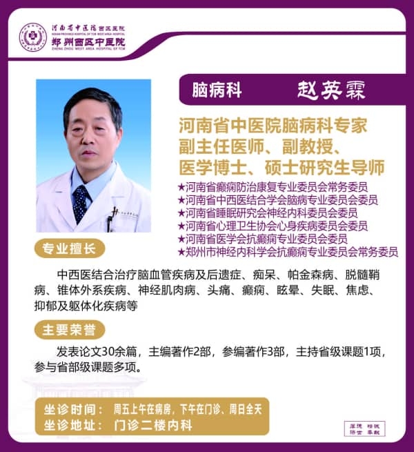 簡介:河南省中醫(yī)院腦病科專家,副主任醫(yī)師,副教授,醫(yī)學(xué)博士,碩士研究生導(dǎo)師。河南省癲癇防治康復(fù)專業(yè)委員會常務(wù)委員,河南省中西醫(yī)結(jié)合學(xué)會腦病專業(yè)委員會委員,河南省睡眠研究會神經(jīng)內(nèi)科委員會委員,河南省心理衛(wèi)生協(xié)會心身疾病委員會委員,河南省醫(yī)學(xué)會抗癲癇專業(yè)委員會委員,鄭州市神經(jīng)內(nèi)科學(xué)會抗癲癇專業(yè)委員會常委委員。