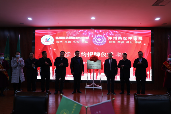 隨后,在多方的共同見證下,鄭州西區(qū)中醫(yī)院與鄭州醫(yī)藥健康職業(yè)學院正式簽約,并由鄭州醫(yī)藥健康職業(yè)學院理事長王澤民與鄭州西區(qū)中醫(yī)院院長王永漢正式揭牌。