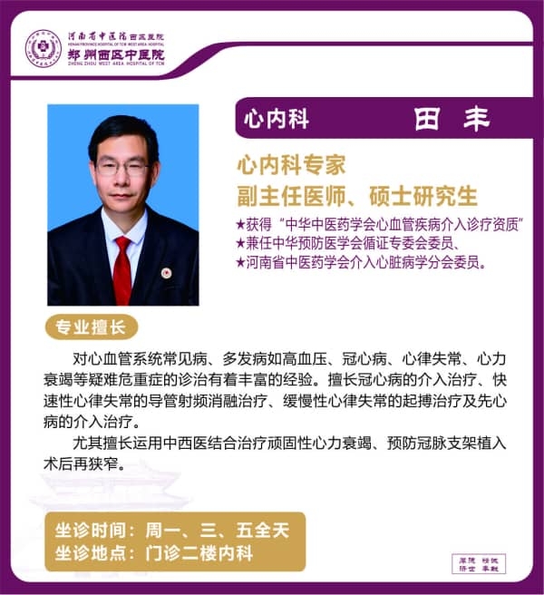 田豐——心內(nèi)科專家,副主任醫(yī)師,碩士研究生,河南省中醫(yī)院西區(qū)醫(yī)院心內(nèi)科主任