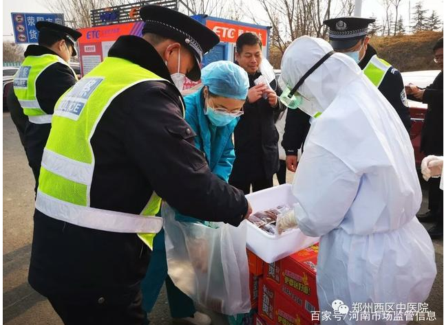 為關(guān)愛奮戰(zhàn)在疫情一線的工作人員,鄭州西區(qū)中醫(yī)院的醫(yī)務(wù)人員將當天上午加班熬制的“高新預(yù)防一號”中藥湯劑送到了高新區(qū)的多個執(zhí)勤卡點,免費供一線的執(zhí)勤人員飲用,共同助力防控新型冠狀病毒肺炎?!斑@些卡點的工作人員舍小家為大家,站在疫情的第一線,我們作為普通醫(yī)務(wù)工作者盡點綿薄之力給他們送點應(yīng)急預(yù)防的中藥,相信在大家的共同努力下,疫情一定會得到控制,向廣大戰(zhàn)斗在一線的工作人員致敬。”院長王永漢說道。