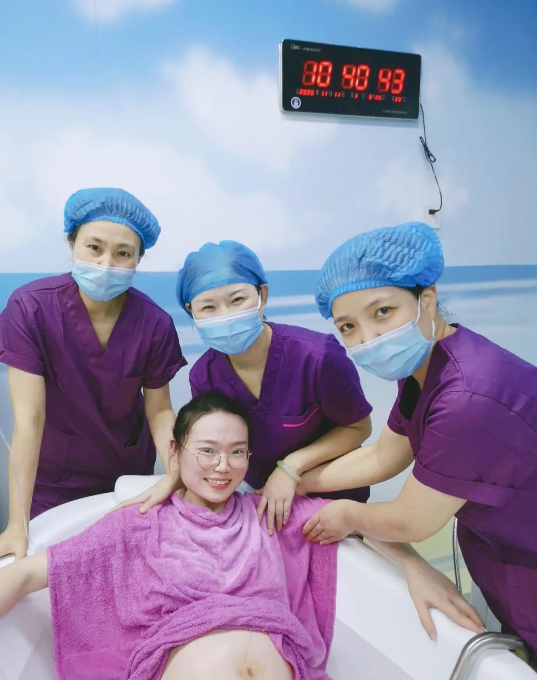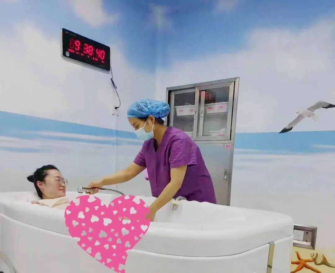 伴隨著舒緩輕柔的音樂,在分娩缸中如同泡溫泉一樣舒服,一名助產(chǎn)士在浴缸旁不停地用花灑沖洗著她的腹部使她放松。楊女士的疼痛較前明顯減輕,為防止體力消耗過大,助產(chǎn)士還時(shí)不時(shí)在旁邊喂水和食物以補(bǔ)充能量,同時(shí)定時(shí)的監(jiān)測胎心。指導(dǎo)她在宮縮的時(shí)候深呼吸放松,讓她隨意轉(zhuǎn)換姿勢,蹲著、躺著、趴著,怎么舒服怎么來,不大一會(huì)兒,楊女士竟然酣然進(jìn)入了夢鄉(xiāng),這使得她的體力得到了很好的保存。