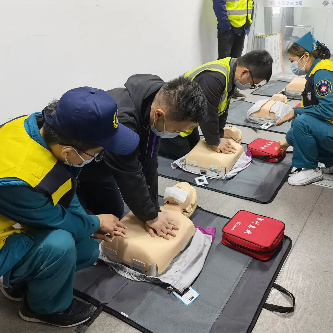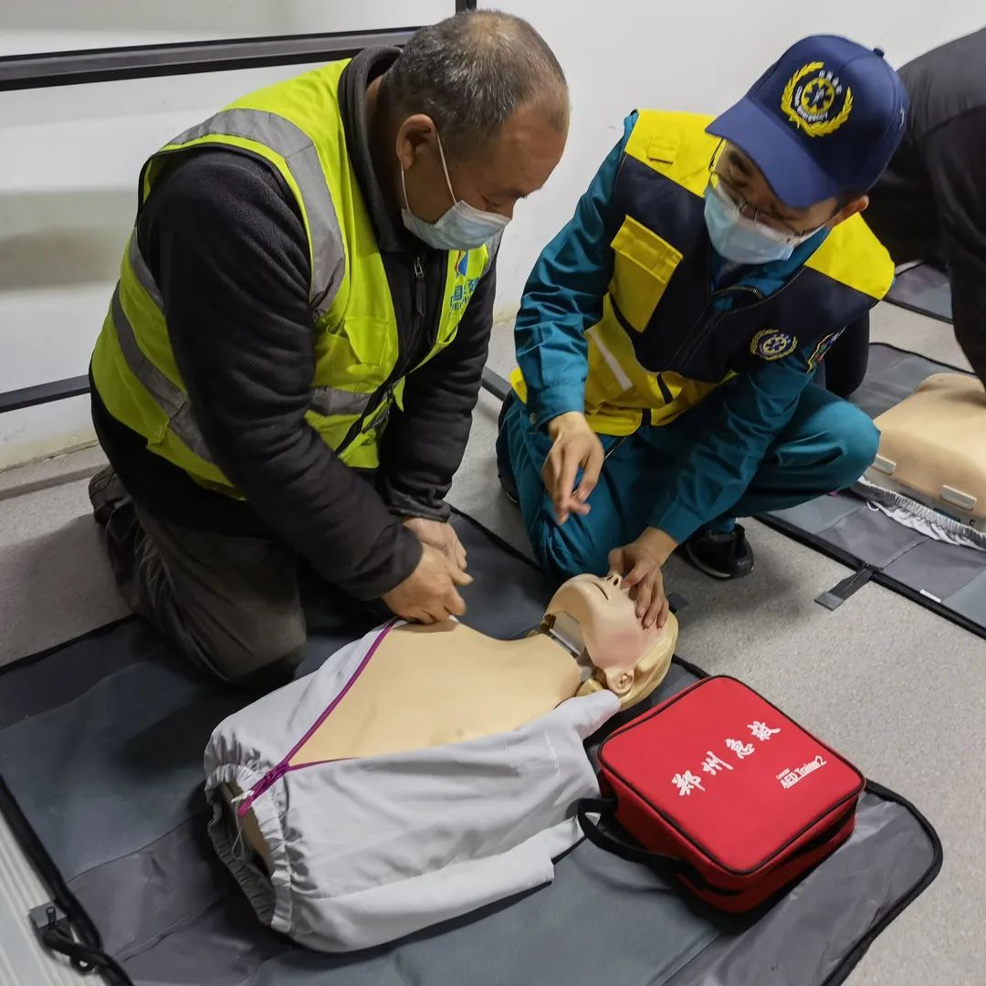 指導(dǎo)心肺復(fù)蘇和AED操作人員:急診科護(hù)士張文雨、陳斯凱,為大家進(jìn)行心肺復(fù)蘇術(shù)(CPR)以及AED的使用等規(guī)范的操作展示。