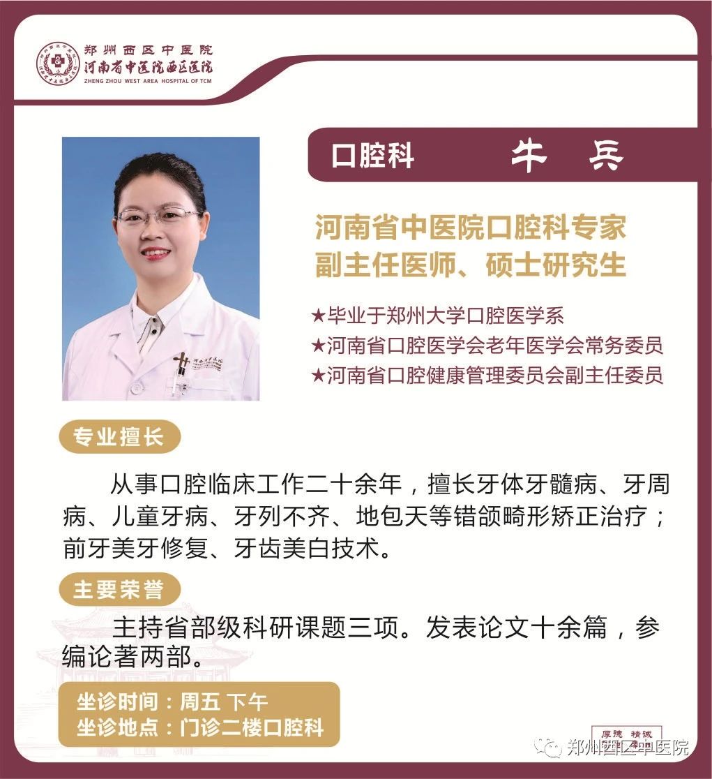 溫馨提示:牛兵主任每周五下午在西區(qū)醫(yī)院口腔科坐診