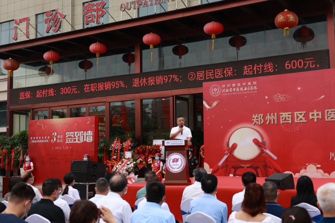慶典在響亮的鳴炮聲、熱鬧的軍樂聲以及莊嚴的國歌聲中拉開帷幕。慶典伊始,鄭州西區(qū)中醫(yī)院(河南省中醫(yī)院西區(qū)醫(yī)院)院長王永漢發(fā)表致辭,首先王院長代表醫(yī)院向與會的各位領導和嘉賓表示熱烈的歡迎,他回顧了醫(yī)院三年的發(fā)展歷程,表示過去的三年來,始終圍繞“一切為了人民健康”的核心宗旨,不斷深化醫(yī)院內涵質量建設,提高創(chuàng)新能力和服務能力,取得碩果累累的成績。此外,王院長還表示,過去的三年是同舟共濟、勇擔重任的三年,自2020年1月開始,醫(yī)院先后經歷了5次以上的疫情爆發(fā),同時醫(yī)院還要面對邊建設邊接診的局面,千頭萬緒,許許多多復雜情況需要面對、需要解決,但是我們的領導團隊、所有的鄭西醫(yī)家人,團結一致,克服種種困難,在完成醫(yī)院正常工作的同時,圓滿完成了鄭州市衛(wèi)健委和高新區(qū)管委會交辦的各項醫(yī)療健康保障任務。
