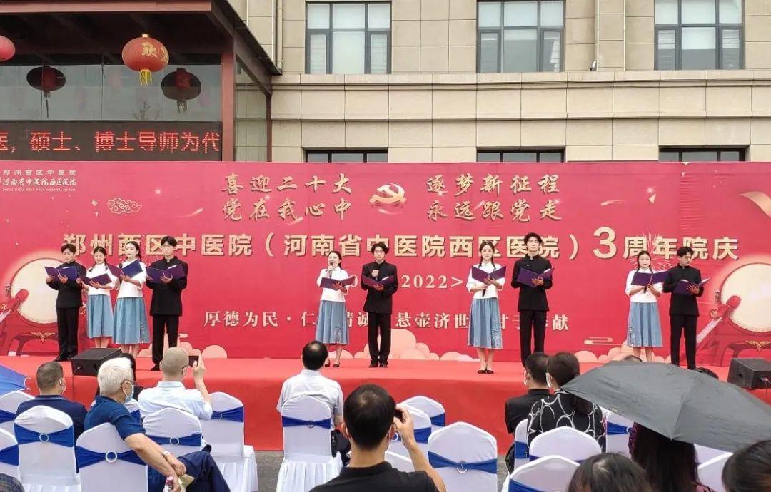 慶典活動還有精彩的節(jié)目演出,不僅有表演藝術家們的曲劇演唱,更有鄭州西區(qū)中醫(yī)院(河南省中醫(yī)院西區(qū)醫(yī)院)院歌演唱、《讀中國》詩歌朗誦,現場掌聲連連,精彩不斷!