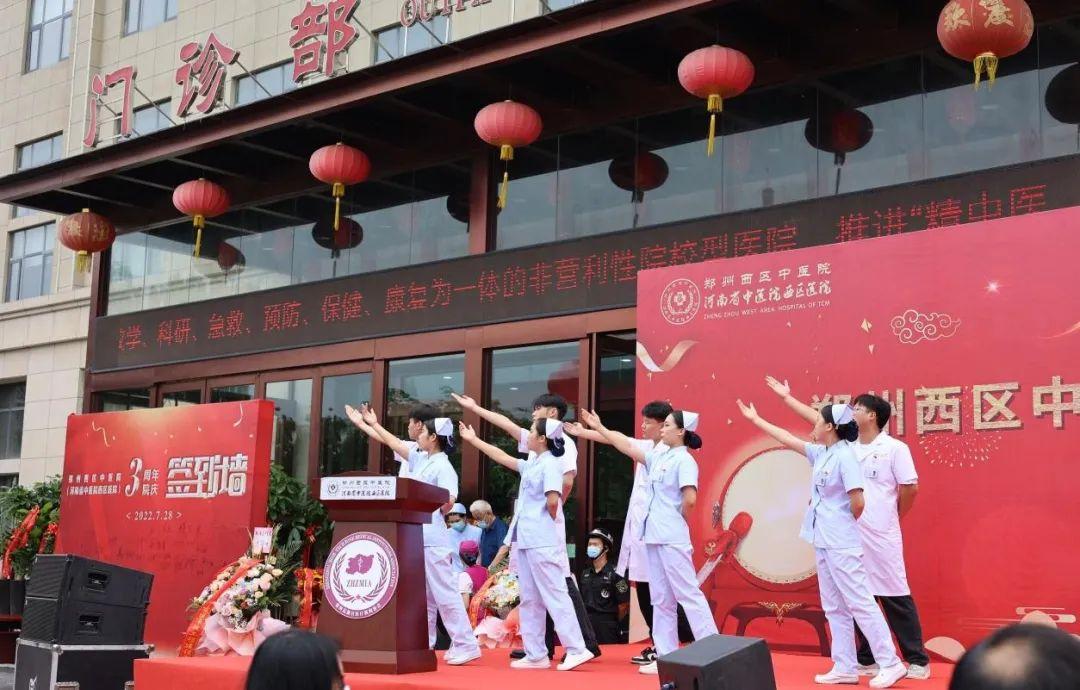 河南省中醫(yī)院副院長李松偉,鄭州高新技術產業(yè)開發(fā)區(qū)社會事業(yè)局局長田鴻鵬、副局長閆春英、副局長盛喆,高新區(qū)管委會機關工會主席郭五香,鄭州高新技術產業(yè)開發(fā)區(qū)梧桐街道辦事處書記張艷茹,民盟中央委員、民盟中央社會服務委員會委員、河南省政協委員、河南民盟企業(yè)家聯誼會會長、民盟河南省委非公經濟委員會主任、河南省電力企業(yè)協會副會長、鄭州市工商聯副主席張磊等領導出席慶典活動。此外,新合鑫集團張志軍董事長,漢威科技集團張惠軍主席,河南金苑糧油有限公司曹長安董事長,鄭州高新技術產業(yè)開發(fā)區(qū)市政工程建設有限公司秦壯志董事長,鄭州醫(yī)藥健康職業(yè)學院理事長王澤民,鄭州森鵬電子技術股份有限公司白慧宇總經理,河南云雷科技有限公司劉彥平董事長,鄭州磨料磨具磨削研究所有限公司劉銘主席,河南省現代醫(yī)學研究院郭宏昌院長,鄭州管洲中醫(yī)院侯占成院長,鄭州友好肝膽病醫(yī)院王慧娟院長等幾十余家單位到場祝賀,共同見證建院三周年輝煌之盛典。