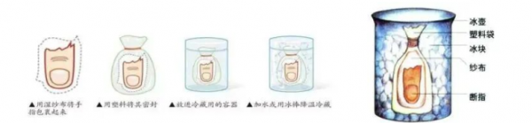 將斷指、斷肢用塑料袋包好,置于干燥的低溫桶中保存,一起帶往醫(yī)院,切忌直接放置入冰水中。